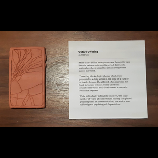 (2021) Media: empty speaker cabinet, disposable facemask, bird skull, rapid antigen test, clay, photo negatives, passport pages, broken license plate, random electrical components, and a pebble.